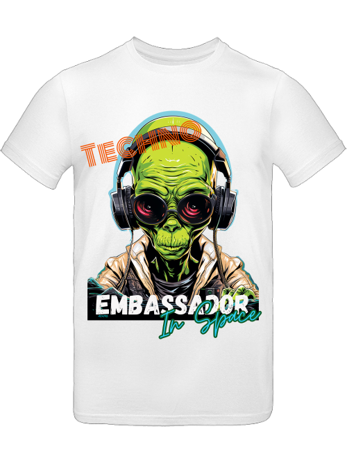 Dieses T-Shirt mit dem Motiv "Techno Botschafter ins All" ist eine Reise in die unendlichen Weiten der elektronischen Klänge. Das Design zeigt den Botschafter, der Techno-Musik in den Weltraum trägt und von einem Alien empfangen wird. Trage dieses Shirt und sei der Entdecker intergalaktischer Beats, eine Hommage an die grenzenlose Faszination von Techno, die selbst in den entferntesten Galaxien erklingt.